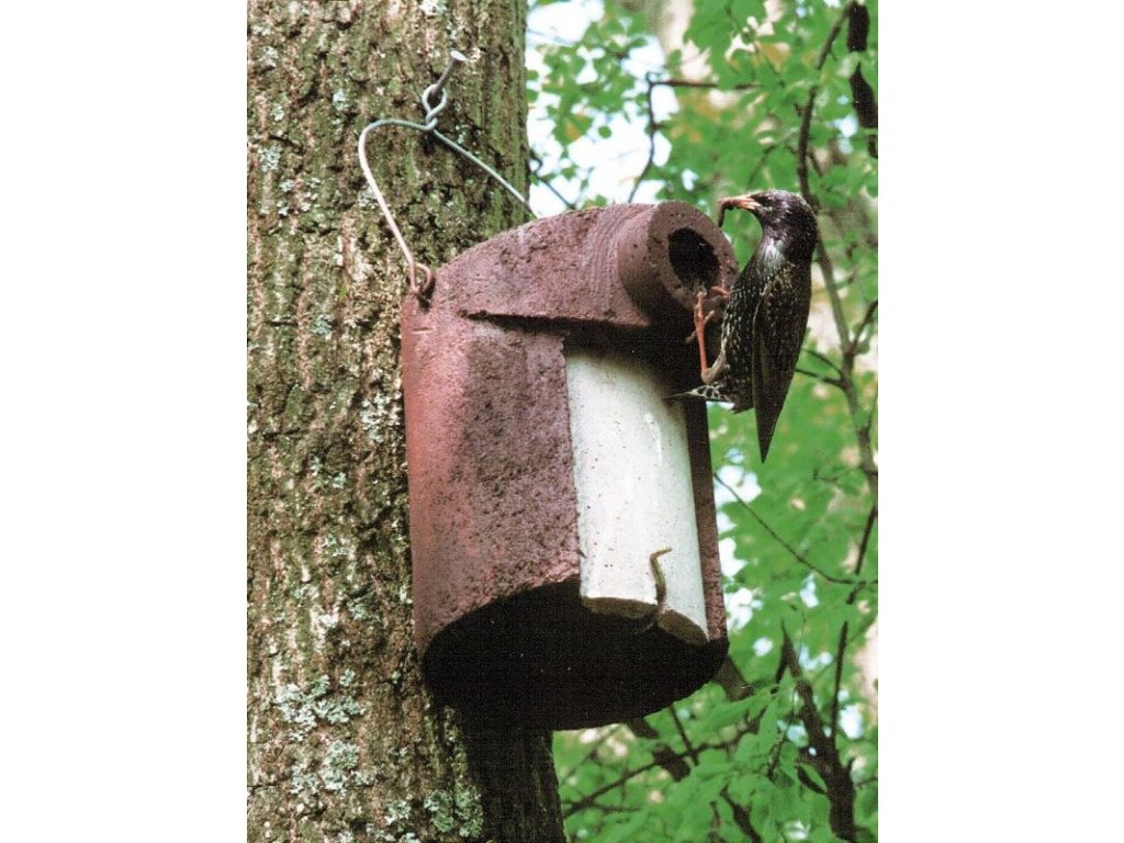 - Tato ptačí budka je ideální pro špačky. Ti jsou častým terčem útoků koček a jiných predátorů. Proto je vchod této budky speciálně tvarován tak, aby znemožňoval predátorům přístup do budky.