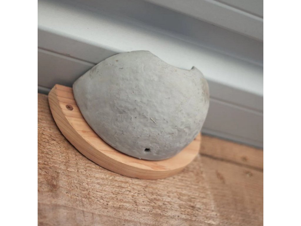 Toto umělé (náhradní hnízdo) pro jiřičky je vyrobené z keramiky a na zeď se připevňuje přes zadní dřevěnou desku. Umisťuje se pod přesah římsy, střechy, balkonu apod., protože musí být z horní části chráněné. Ptáci vstupují dovnitř malým otvorem a díky tomu jsou v hnízdě v bezpečí.