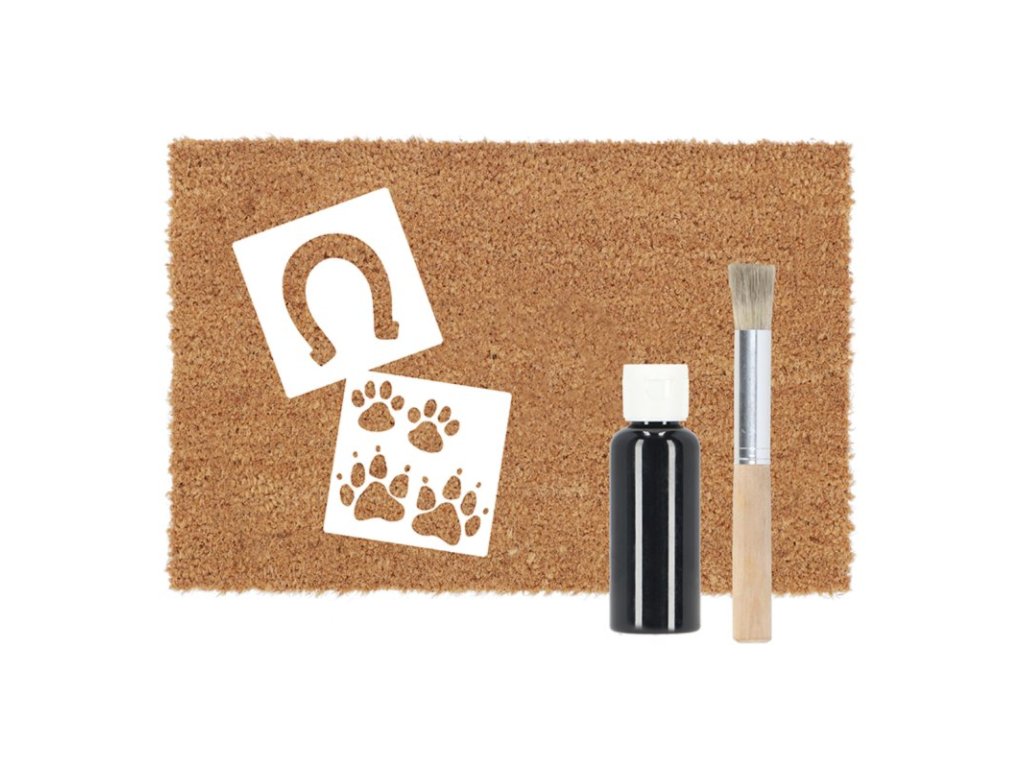 Obsahuje: rohožku z kokosového vlákna, šablony, barvu, štětec.