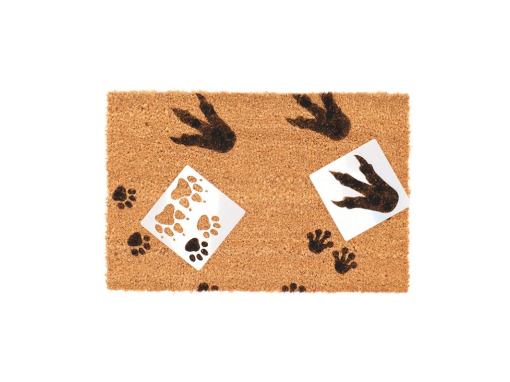 Pěknou rohožku má kdekdo, vy můžete mít rohožku, kterou nikdo jiný mít nebude. Díky této sadě „udělej si sám“ si vyrobíte vlastní rohožku dle svého návrhu. Sada obsahuje několik šablon se stopami zvířat, štětec, černou barvu a samozřejmě také rohožku, kterou si můžete nabarvit, jak je libo. Rohožka je vyrobena z kokosového vlákna a má spodní PVC vrstvu, díky které přilne k podlaze a bude držet na místě. S trochou fantazie si vytvoříte originální dílo, které si pak vystavíte před vchodové dveře.