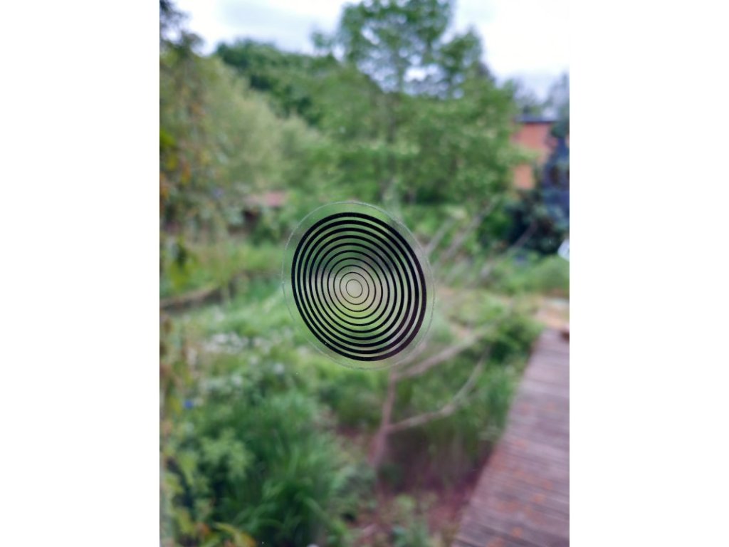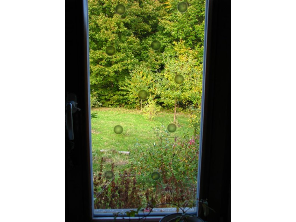 Výlep koleček můžete kombinovat i s jinými tvary z naší nabídky. Ptákům na tvaru nezáleží, samolepka jakéhokoliv tvaru jim označuje překážku v průletu. Pokud je to možné, lepte samolepky z vnější strany skla, jsou pro ptáky viditelnější. Barvu samolepek volte co nejkontrastnější k barvě okolí, které se v okně odráží. Např. tmavý les – bílá samolepka, nebe – černá samolepka.