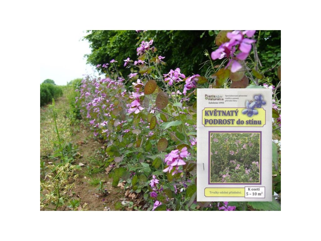 - Složení: Květiny 65%: bukvice lékařská (Betonica officinalis), čilimník černající (Cytisus nigricans), drnavec lékařský (Parietaria officinalis), hrachor černý (Lathyrus niger), hrachor jarní (Lathyrus vernus), hvozdík pyšný (Dianthus superbus), chrpa čekánek (Centaurea scabiosa), jahodník obecný (Fragaria vesca), jestřábník savojský (Hieracium sabaudum), jestřábník zední (Hieracium murorum), klinopád obecný (Clinopodium vulgare), kohoutek věncový (Lychnis flos-cuculi), mochna přímá (Potentilla recta), náprstník červený (Digitalis purpurea), náprstník velkokvětý (Digitalis grandiflora), oman hnidák (Inula conyzae), oměj vlčí mor (Aconitum lycoctonum), orlíček obecný (Aquilegia vulgaris), ožanka lesní (Teucrium scorodonia), plamének přímý (Clematis recta), prvosenka jarní (Primula veris), pryšec chvojka (Euphorbia cyparissias), řimbaba chocholičnatá (Tanacetum corymbosum), řimbaba obecná (Tanacetum parthenium), silenka dvoudomá (Silene dioica), silenka nící (Silene nutans), sléz pižmový (Malva moschata), svízel lesní (Galium sylvaticum), svízelka chlupatá (Cruciata leavipes), šalvěj lepkavá (Salvia glutinosa), tolita lékařská (Vincetoxicum hirundinaria), třemdava bílá (Dictamnus albus), třezalka chlupatá (Hypericum hirsutum), večernice vonná (Hesperis matronalis), violka Rivinova (Viola riviniana), zvonek kopřivolistý (Campanula trachelium), zvonek řepkovitý (Campanula rapunculoides), zvonek širokolistý (Campanula latifolia), Traviny 35 %: kostřava drsnolistá (Festuca brevipila), kostřava lesní (Festuca altissima), kostřava ovčí (Festuca ovina), kostřava různolistá (Festuca heterophylla), lipnice hajní (Poa nemoralis), metlice trsnatá (Deschampsia cespitosa), ostřice měkkoostenná (Carex muricata), srha hajní (Dactylis polygama), tomka vonná (Anthoxanthum odoratum), válečka lesní (Brachypodium sylvaticum)