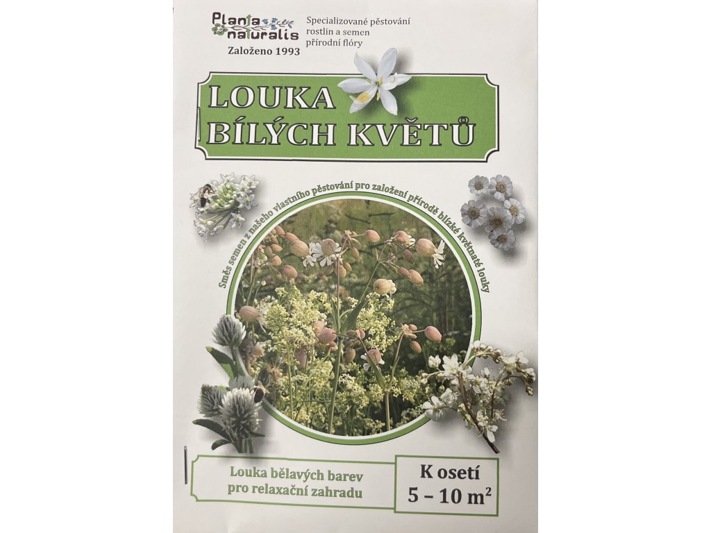 Složení: Luční květiny 80 %: bělozářka liliovitá (Anthericum liliago), česnek vonný (Allium tuberosum), čistec přímý (Stachys recta), jetel horský (Trifolium montanum), kerblík lesní (Anthriscus sylvestris), kmín kořenný (Carum carvi), lomikámen zrnatý (Saxifraga granulata), mák bělokvětý (Papaver maculosum), mochna skalní (Drymocallis rupestris), mrkev obecná (Daucus carota), paprska velkokvětá (Orlaya grandiflora), pryskyřník platanolistý (Ranunculus platanifolius), řebříček bertrám (Achillea ptarmica), řebříček obecný (Achillea millefolium), řimbaba chocholičnatá (Pyrethrum corymbosum), řimbaba obecná (Pyrethrum parthenium), silenka hajní (Silene nemoralis), silenka nadmutá (Silene vulgaris), silenka nící (Silene nutans), silenka širolistá bílá (Silene latifolia), svízel bílý (Galium album), svízel severní (Galium boreale), šedivka šedá (Berteroa incana), tužebník obecný (Filipendula vulgaris); Traviny 20 %: kavyl Ivanův (Stipa pennata), kostřava nepravá (Festuca pulchra), kostřava žlábkatá (Festuca rupicola), lipnice úzkolistá (Poa angustifolia), medyněk měkký (Holcus mollis), ovsíř pýřitý (Avenula pubescens), smělek štíhlý (Koeleria macrantha), strdivka sedmihradská (Melica transsilvanica), tomka vonná (Anthoxanthum odoratum), třeslice prostřední (Briza media)