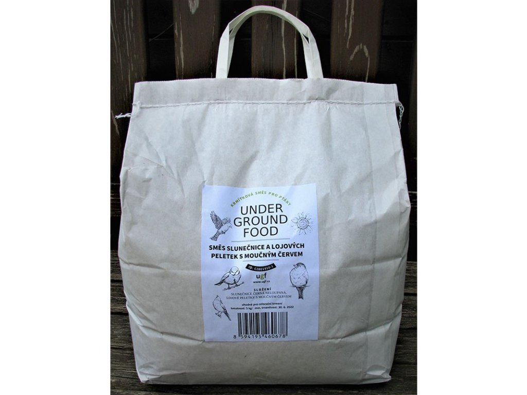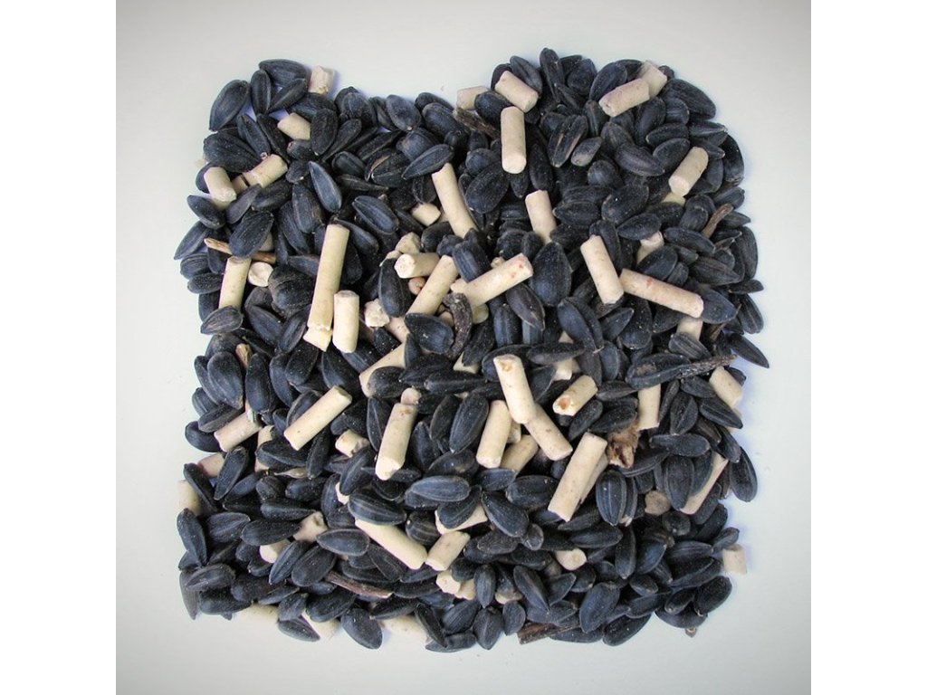 - Složení: neloupaná černá slunečnice a peletky s moučným červem (v poměru 2:1)