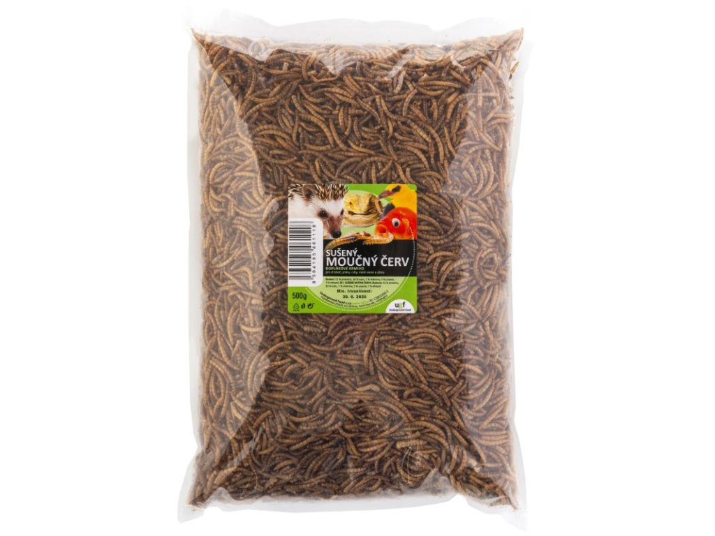 Sušené larvy potemníka moučného jsou přírodní a vysoce energetické krmivo. Postup sušení ve vysoké míře zachovává výživové hodnoty čerstvých larev, zároveň zajišťuje velkou trvanlivost výrobku a pohodlí při jeho použití. Moučný červ je vhodným doplňkem stravy ptáků včetně drůbeže, ale také ryb, ještěrek, leguánů, želv, žab, ježků, křečků, myší, potkanů a jiných malých savců, koček a psů.