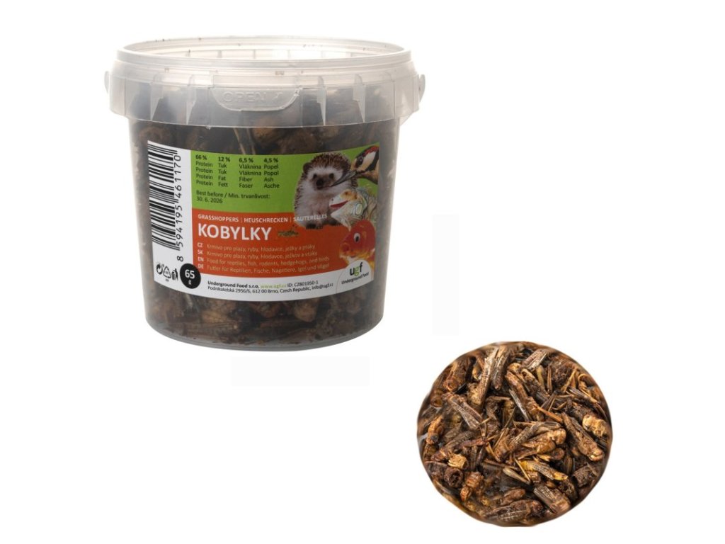- sušené kobylky jsou vynikajícím obohacením každodenního krmení - podporují imunitní systém, zdravý vývoj a růst zvířat, zlepšují celkovou kondici.