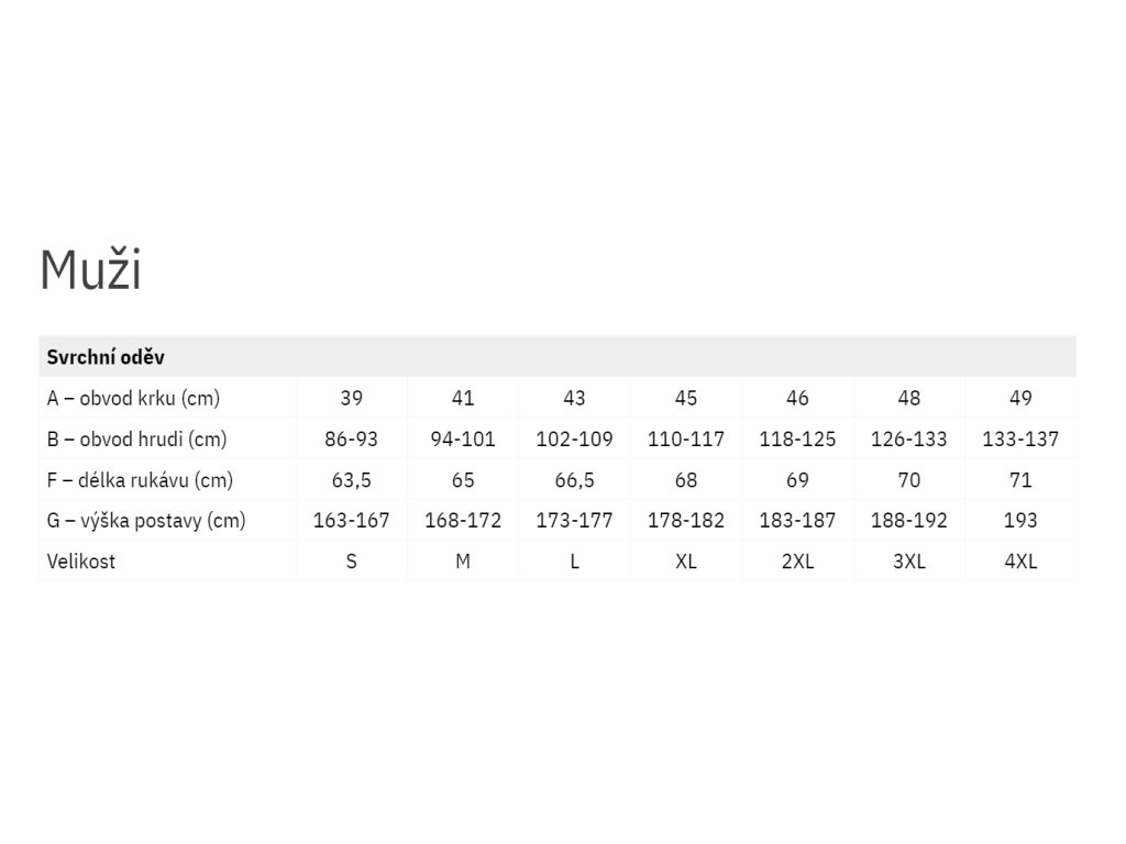 Tabulka velikostí je na konci mezi obrázky. Klikněte na obrázek trička a posouvejte se pomocí šipek.