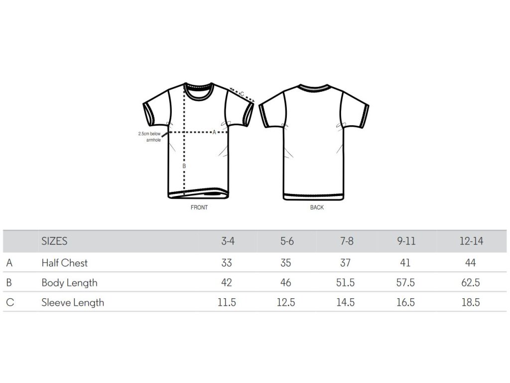 Tabulka velikostí je na konci mezi obrázky. Klikněte na obrázek trička a posouvejte se pomocí šipek.