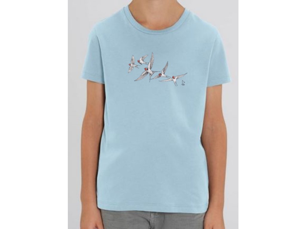 Dětské tričko s originálním motivem letících vlaštovek. Tričko je vyrobeno ze 100% bio bavlny a splňuje mezinárodní standard GOTS*. Gramáž 155 g/m2