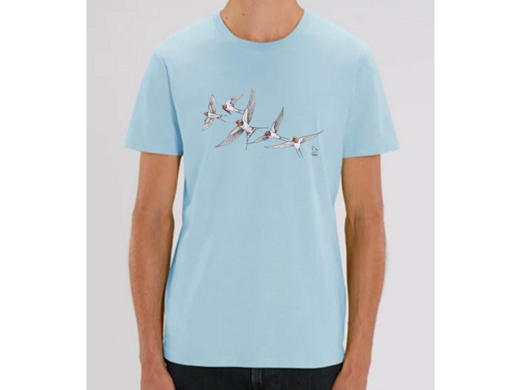 Pánské tričko s originálním motivem letících vlaštovek. Tričko je vyrobeno ze 100% bio bavlny a splňuje mezinárodní standard GOTS*. Gramáž 180 g/m2, technika tisku: digitální potisk.