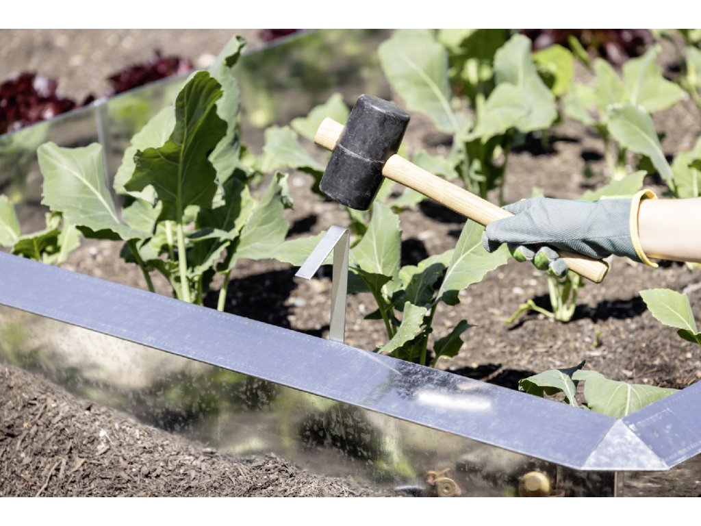 - Kolík pro pevné ukotvení ohradníku proti slimákům, který zabraňuje těmto plazivým škůdcům v přístupu k rostlinám.