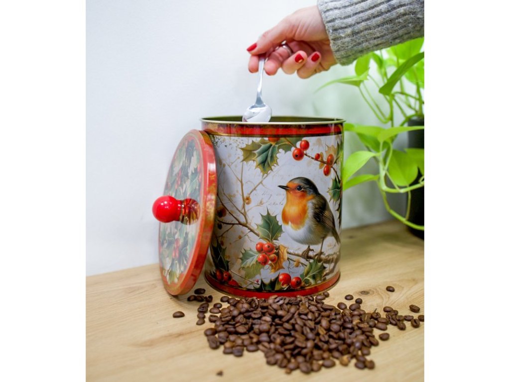 Multifunkční dóza s motivem červenky bude estetickým doplňkem vaší domácnosti a také skvělým dárkem pro milovníky čaje, kávy i cukrovinek. Dóza je lehká, snadno se otevírá a díky pevnému víku chrání obsah před vlhkostí a ztrátou čerstvosti.