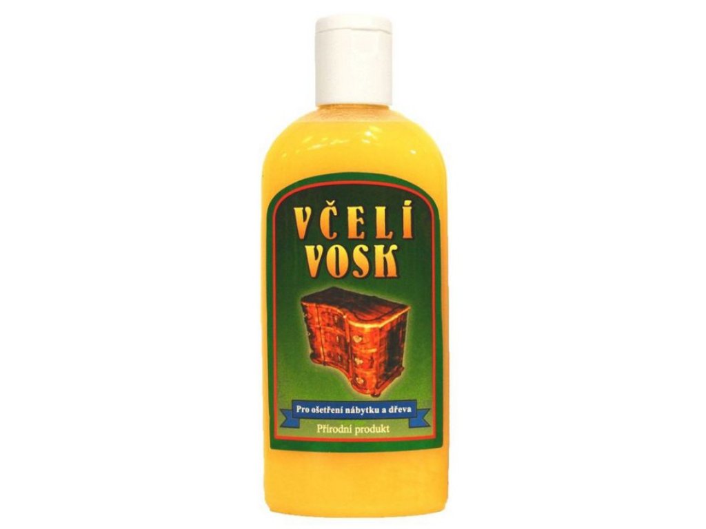 Údržba nátěru: K mytí zašpiněných míst používejte mýdlový roztok. Případná silně zašpiněná místa můžete přebrousit jemným brusným papírem a opětovně natřít včelím voskem. Kraje přebroušeného místa rozleštíte hadříkem tak, že nebude vidět rozdíl mezi povrchem opravené plochy a původním nátěrem.