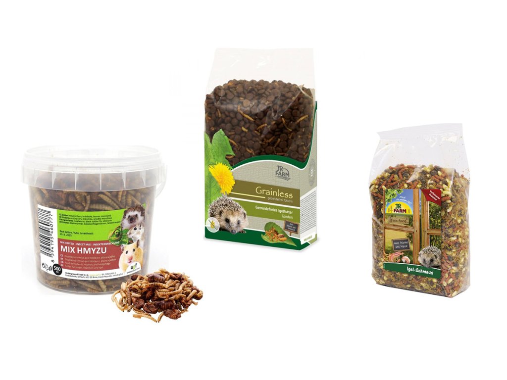 - obsahuje jedno balení krmení pro ježky JR Farm Grainless, krmení pro ježky JR Farm - Ježek Feast a mix sušeného hmyzu UGF