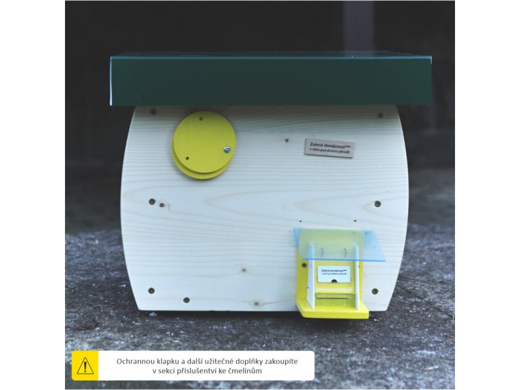 - Ochranná klapka je velmi doporučovaným příslušenstvím pro váš čmelín. Není součástí výrobku, prodává se samostatně. Na barvě klapky záleží jen ve chvíli, kdy máte více čmelínů vedle sebe. V takovém případě volte různé barvy, abyste čmelíny jednoduše rozlišili.