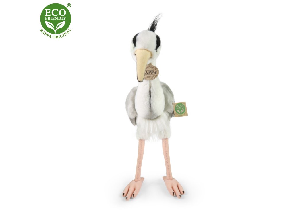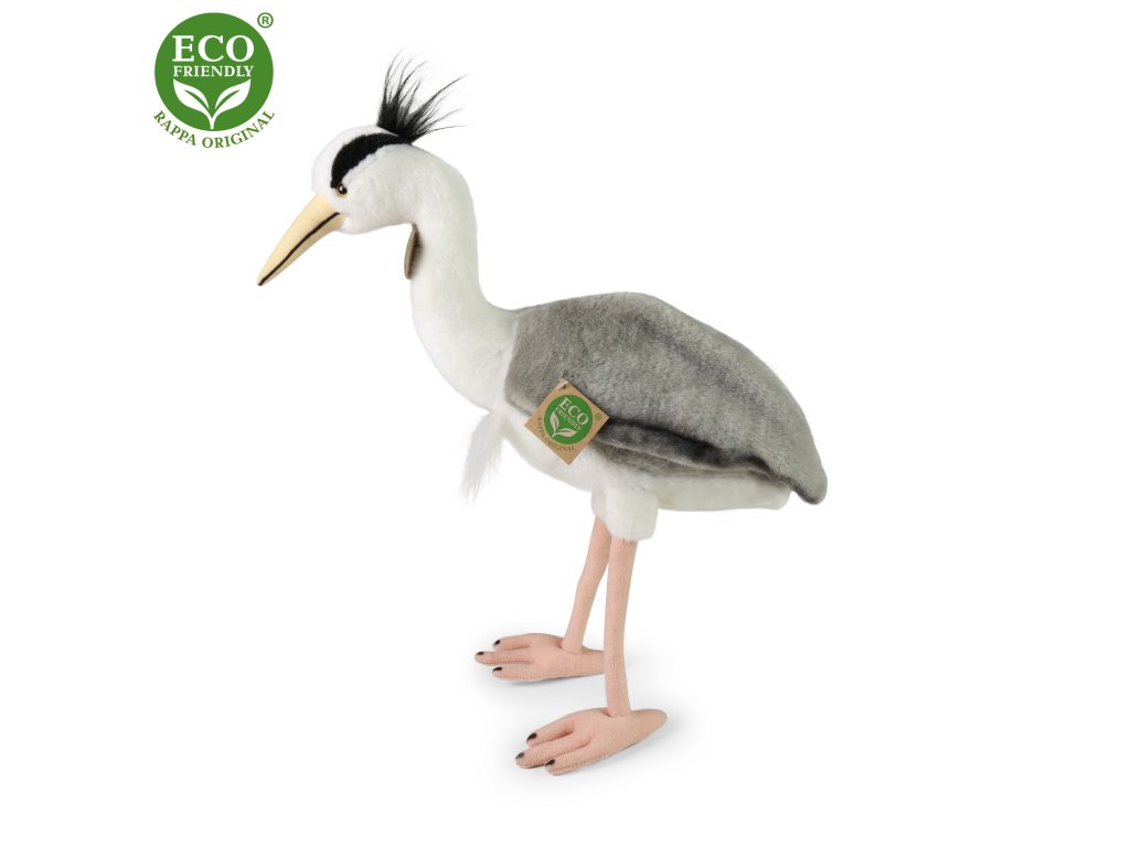 Plyšová volavka ve velikosti 35 cm je ručně ušitá z vysoce kvalitní, jemné plyše. Pro svou roztomilost se stává vítaným společníkem nejen do každého dětského pokojíčku. Je součástí exkluzivní kolekce plyšových hraček RAPPA ECO-FRIENDLY. Výplň plyšové hračky je vyrobena z recyklovaných PET lahví. Tento materiál je zcela bezpečný, na omak nerozeznatelný od standardní výplně a plně atestovaný pro bezpečnost i těch nejmenších.