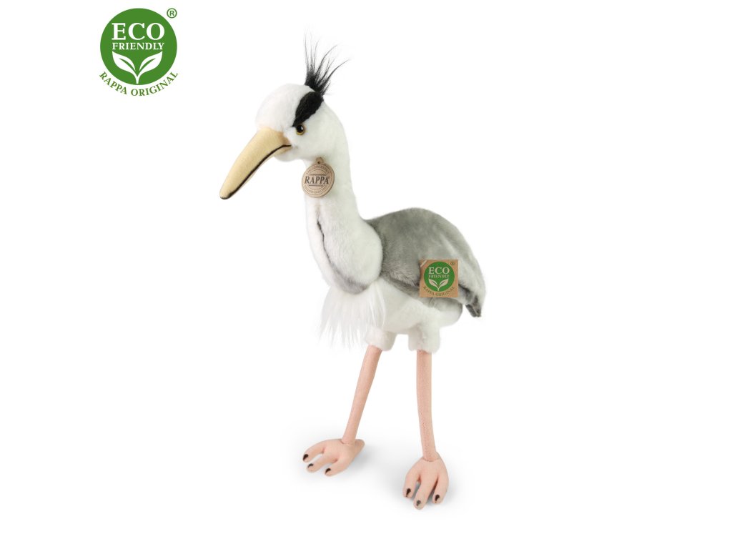Krásná plyšová volavka ve velikosti 35 cm (měřeno včetně nožek) je vyrobena z exkluzivní, velmi kvalitní plyše. Výplň plyšové hračky je vyrobena z recyklovaných PET lahví. Tento materiál je zcela bezpečný, na omak nerozeznatelný od standardní výplně a plně atestovaný pro bezpečnost i těch nejmenších.