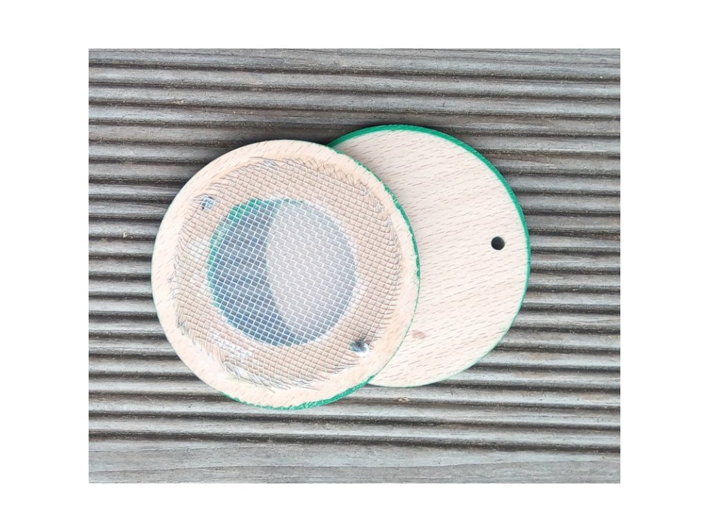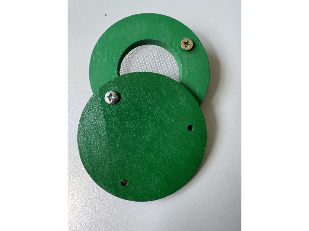 - Materiál: překližka natřená ekologickou zelenou barvou, síťka z hliníku a jemnější síťka z uhelonu s ještě menšími oky