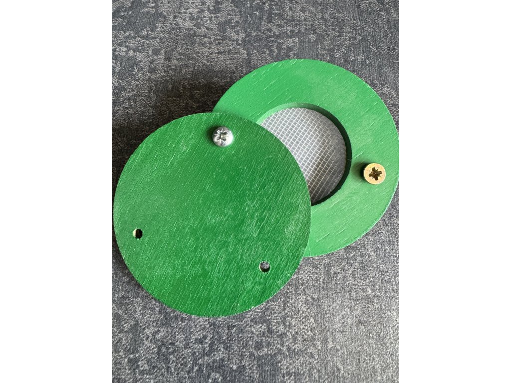 Zavírání větracího otvoru se přidělává 2 vruty, které jsou součástí výrobku. Jsou vhodné na otvor o průměru 4 cm a menší. Pro odstranění případné netěsnosti mezi pohyblivým víčkem a kolečkem se síťkou, jsme přidali další 2 malé vruty. Jejich našroubováním do předvrtaných otvorů ve víčku víčko dokonale přitáhnete ke kolečku. V době pootevírání větracího otvoru musíte tyto vruty vyšroubovat, aby šlo s víčkem pohybovat.
